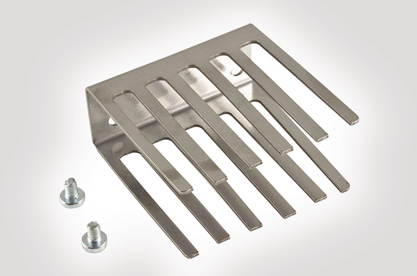 HellermannTyton supply a range of fibre management accessories for use with the IR fibre enclosures. The rear cable basket manager is a mounting bracket designed for use with the single compartment IR enclosure. The bracket is manufactured from zinc passivated mild steel and has been designed to provide additional cable storage space in addition to allowing the enclosure to be quickly and easily mounted or dismounted from the street cabinet or wall. The cable bridge clamp and fittings are manufactured from zinc passivated mild steel and stainless steel providing an effective method of extending the capacity of the IR enclosures. The design allows the cable capacity of the IR enclosure to be extended from 2 cables to 4 cables (single compartment enclosure) and 4 cables to 8 cables (double compartment enclosure) with each cable having a maximum diameter of 20mm. The foam fibre manager is manufactured from zinc passivated mild steel and has been designed to be used in conjunction with the duct managers. The dense foam pad fitted on to the retainer is partially cut through to accommodate a range of fibre counts securing the fibres in place, the foam pad can be sized to accommodate a range of different cable dimensions. The duct managers are manufactured from stainless steel and have been designed to provide a simple solution to blown fibre duct management within the IR Enclosures. The duct manager can be fitted on to the outgoing side of the enclosure and is used to secure and manage blown fibre ducts with a diameter of either 5mm or 7mm. |