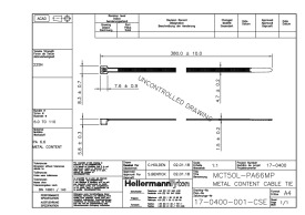Application | The Metal Content Tie is a cable tie specifically designed for use in the food and pharmaceutical processing industries. A unique manufacturing process, involving the inclusion of a metallic pigment, enables even small 'cut-off' sections of the tie to be detected by standard metal-detecting equipment. Ideally suited for the installaton of cabling in and around the manufacturing process. |
