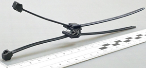 | Short Description | 3-Piece Fixing Tie, outside serrated 200 x 4.9 mm, for Edges 1.5-4 mm, for parallel routing, PP/HIRHS-black |