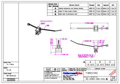 | Application | These cable ties and EdgeClip assemblies are ideal for use where holes are not acceptable or where due to temperature problems adhesives will fail. These assemblies are widely used for fixing and bundling cables, pipes and hoses within the automotive industry, harness making, panel building and electrical industry. |