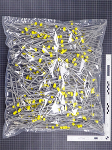 Fixing tie for hole (round), inside serrated, ⌀1-45.0mm, grey/yellow, 500pcs.