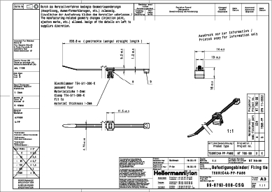 Available with either 'inside' or 'outside' serrated ties these two piece assemblies simply push onto an edge with thicknesses from 1.0 to 3.0mm. The high 'pull off' forces are due to the integrated metal clamp. Different EdgeClip variations are available. One version allows for cables to run parallel to the edge, whilst another allows for installation at 90 degrees to the edge. The clip is simply pushed on by hand and held firmly in place by the integrated metal clamp. No fixing hole is necessary. Combined with the outside serrated (OS) ties, specially designed to protect cables from chafing and wear, the EdgeClip family provides an excellent fastening solution. |