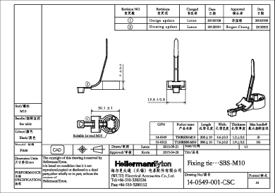 | Cable Tie | Polyamide 6.6, heat stabilised (PA66HS) |