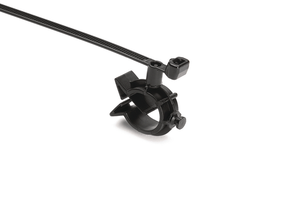 | Description | HellermannTyton’s 1-Piece Cable Tie with Pipe Clip secures cables to tubular frame rails. The cable tie bundles wires, cables or tubes, and the C-clip snaps onto the tubular frame rail. The clip can be removed from the mounting surface and reinstalled without additional fasteners. |
