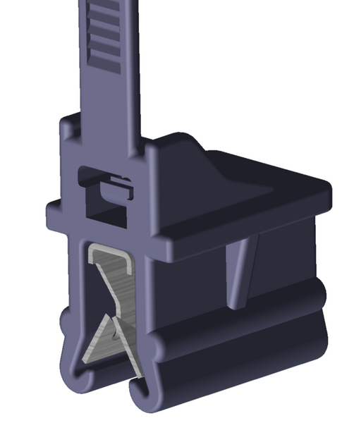 These cable ties and EdgeClip assemblies are ideal for use where holes are not acceptable or where due to temperature problems adhesives will fail. Once the cable tie is fastened around the cables the EdgeClip is presented ready for attaching to the panel. Widely used within the automotive and panel building industries these cable ties and EdgeClips save time and money. The silver-grey clamp, the heart of our EdgeClips, consists of doubletempered spring steel in accordance with DIN EN 10132-4 C75S. The spring steel gives the clamp both the necessary rigidity to provide high pull-off forces and also sufficient flexibility for various possible applications. The double coating is applied initially with a zinc plate system followed by inorganic surface sealing. Naturally, no chromium (VI) is used in this process. The clamp therefore complies with the current EU Directive 200/53/EC on end of life vehicles and the prohibition on heavy metals. The refined spring-steel clamp also fulfils the requirements for resistance to salt spray stipulated in DIN EN ISO 9227 NSS (min. 840 h without corrosion of base metal) and DIN EN ISO 6270-Z-CH (min. 720 h without corrosion of base material). This solution has therefore been approved by many OEMs for exposed installation locations, e.g. in engine compartments and the running-gear area. |