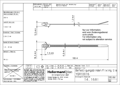 | Short Description | 1-piece fixing ties with arrowhead, with wings, releasable 165x4.6 mm, grey |