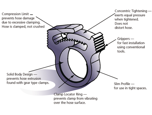 | Application | Our SNP range can be used as an alternative to metal hose clamps. Snapper can be used in markets as diverse as automotive, agriculture, white goods, venting systems, pumps and hydraulic systems to medical engineering. |