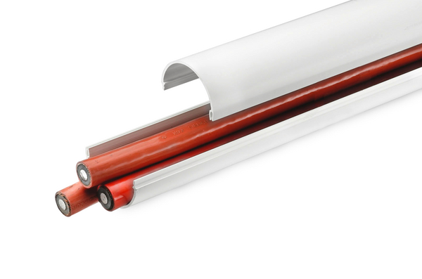 | Application | The protective half-shells HS protect the communications and power cables at the above ground installation. Furthermore they fulfill all requirements of fine sand-tight protective pipes for cables for repair half shells. They consist of two half shells with continuous snap lock and are made from UV-resistant PVC-U. Due to their white color, they expand only to a minimum under solar exposure. The simple handling allows quick assembly and reusability. |