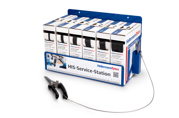| Application | HIS general purpose heat shrink tubing provides a reliable insulation and protects against corrosion and mechanical influences. The handy dispenser is ideal for small and medium size projects on-site. The sturdy metal HIS-Service-Station comes with a cutter and can store all sizes and colours. The Service Station can be mounted to the wall in the work shop or service-van. |