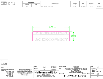 | Application | For use on the AC Disconnect. Variable print can be added using a sharpie or thermal transfer printer |