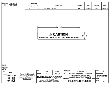 | Technical Description | 4.12" X .75" Black text on an Yellow background that reads as: "CAUTION - PHOTOVOLTAIC SYSTEM CIRCUIT IS BACKFED." - 50 per roll. |