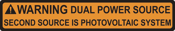 | Technical Description | 4.12" X .75" Black text on an Orange background that reads as;" WARNING - DUAL POWER SOURCE SECOND SOURCE IS PV SYSTEM." 50 per roll |