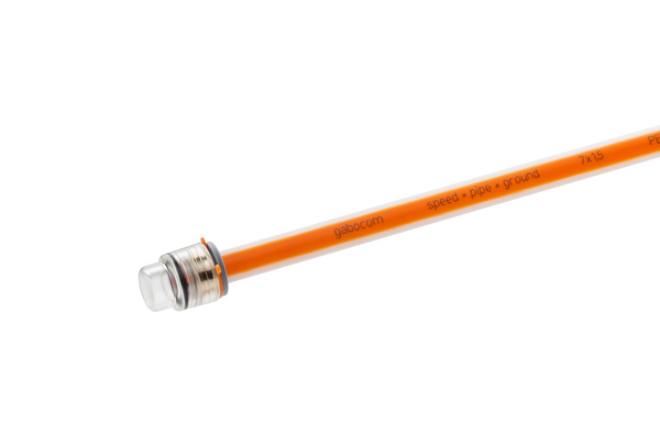 | Application | Tensile and buriable: The cover of the speedpipe ends protects the entire duct system against the penetration of water, dirt and gas. The end plug itself is gas- and water-tight up to 0.5 bar. Mounted on the speedpipe by simply sliding it up, the end plug as easily is removed by opening the locking ring. |