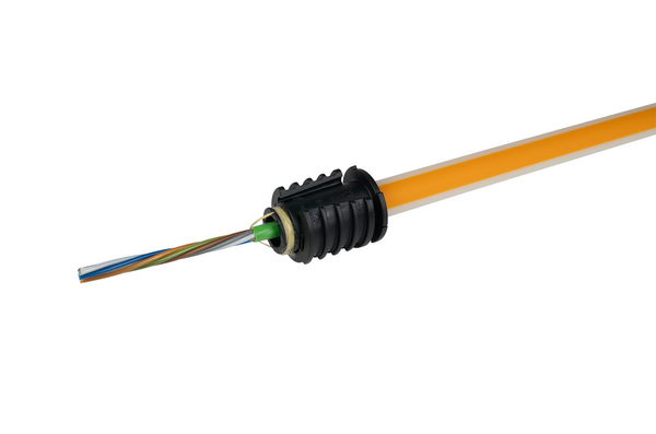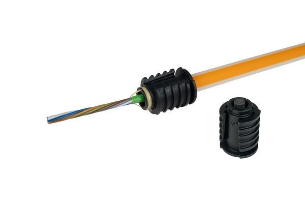 | Application | Tensile and reusable: the divisible elements are sealing occupied or empty speedpipe against gas and water up to 0.5 bar. The integrated safety valve opens before a blowing in pressure of 10 bar has been reached. They can be installed fast and easy and without special equipment. In addition, two cut-outs allow the aramid yarn of the fiber optic cable to be used for tension absorption. |