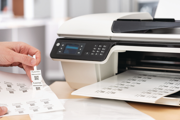 Cable label, white, laser print, 44.5x25.4mm, H2=57.15mm, 2400