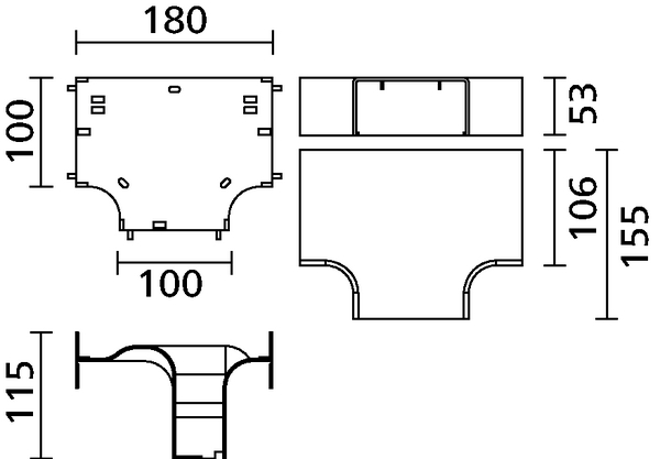 | Descripción del producto | Unión plana en "T" - compuesta por tapa, base y separador, con un radio mínimo de curvatura de 1", manteniendo la separación interna entre los cables. |