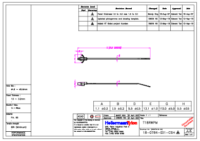 | Solicitud | Precintos con clip de fijación en formato de flecha (arrowhead). Ideales para sujeción y fijación de alambres, cables, caños, mangueras y tubos en láminas. Utilizados en diferentes industrias como automotriz, aeroespacial, electrodoméstica y panel eléctrico. |
