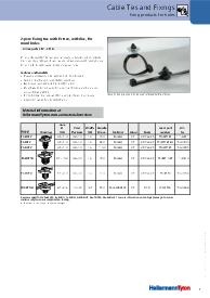 These two-piece fixings are supplied ready assembled and offer a simple and versatile method of bundling and fixing cables. The fir-tree base will easily push into pre-punched holes in panels or threaded, blind, holes and offers a very secure fixing. The two-piece design enables the head of the tie to be orientated to the required position to ease assembly, whilst the 'disc' on the top of the fir tree covers the hole and minimises the ingress of water and dirt. |