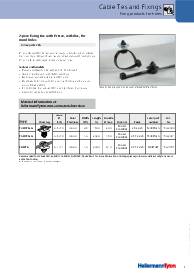 These two-piece fixings are supplied ready assembled and offer a simple and versatile method of bundling and fixing cables. The fir-tree base will easily push into pre-punched holes in panels or threaded, blind, holes and offers a very secure fixing. The two-piece design enables the head of the tie to be orientated to the required position to ease assembly, whilst the 'disc' on the top of the fir tree covers the hole and minimises the ingress of water and dirt. |