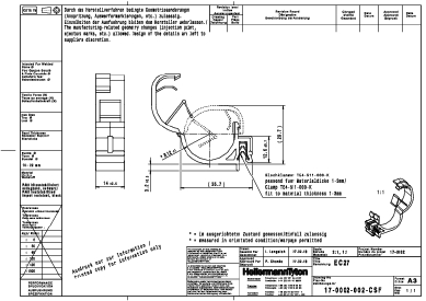 Cable clip for edge, T=1.0 - 3.0mm, Dmin=15mm, Dmax=22mm