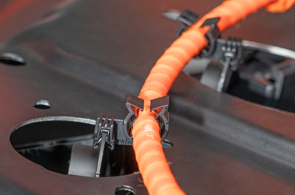 | Application | Clips to be pushed onto an edge for a low-vibration routing of bigger bundle diameters. |