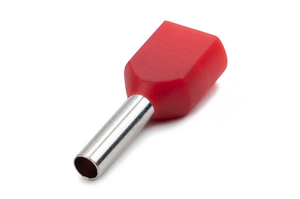 | Application | Twin bootlace terminals are designed to terminate two stranded wires into a single insulated ferrule, allowing for a neat and secure connection into one terminal point. This is ideal for simplifying wiring layouts and reducing clutter in control panels, switchboards, and modular connectors. The nylon sleeve (PA66) provides insulation, strain relief, and resistance to abrasion and chemicals. Twin ferrules are especially useful when two conductors need to be joined for common connections, such as daisy-chaining or parallel wiring. |