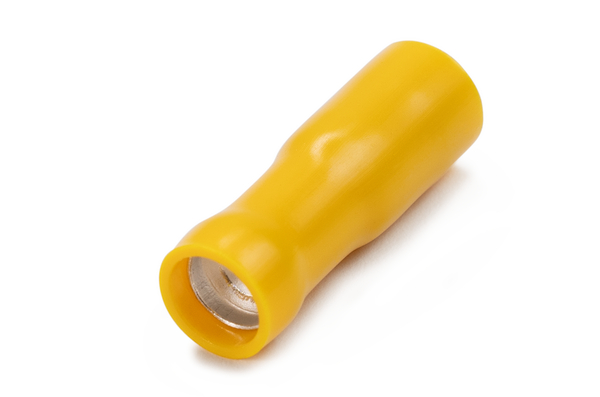 | Application | Female bullet connectors are designed to pair seamlessly with male bullet terminals (BDM Series), forming a secure, disconnect able connection ideal for systems that require regular servicing or reconfiguration. Their rounded internal profile ensures smooth mating with the male bullet, making them especially useful in tight or blind installation spaces. The funnel entry simplifies wire placement, helping installers work quickly and accurately, while the double grip crimp provides a strong, vibration-resistant hold that maintains electrical integrity over time. Commonly used in automotive, marine and agricultural applications. For best results, crimp using the HYYT7 tool to ensure consistent and secure connections. |
