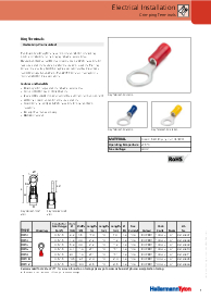 | Application | Double grip ring terminals are ideal for wire-to-stud connections in demanding industrial environments and applications with high vibration. The ring shape ensures secure contact, while the additional copper sleeve and PVC insulation provide premium wire protection and vibration resistance. The terminal remains fixed as the screw passes through the stud hole. Use with the HYYT7 crimping tool for best results. |