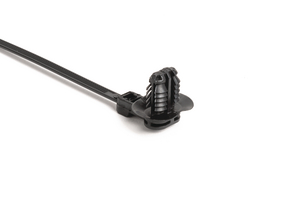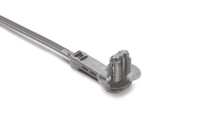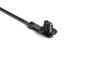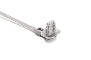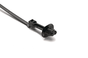 | Application | One-piece cable tie and mount offers a simple bundling and mounting solution. The innovative design of this fir tree establishes a 360-degree interface with the panel hole, ensuring a more secure fit. The oval shape won’t rotate once inserted, ensuring proper routing of wires and hoses. The disc feature prevents rattling in high-vibration applications and protects against debris ingress. |