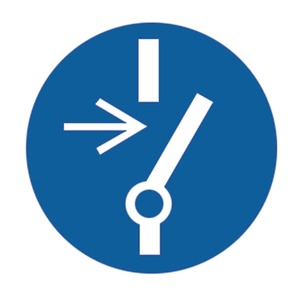 Mandatory label, pre-printed, ⌀100.00mm, blue, pack=10pcs.