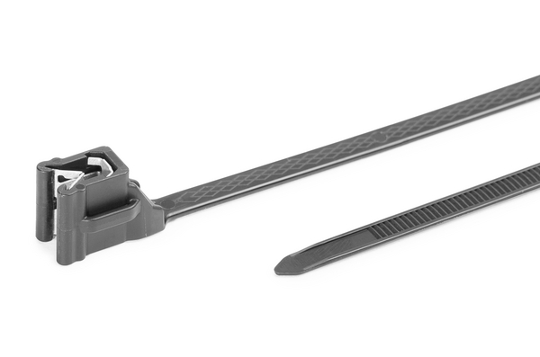 | Description | HellermannTyton’s Cable Tie with Edge Clip is designed to route bundles by securing them to the edge of a plastic or metal sheet without the need for a mounting hole. The clip is easy to secure, and the extraction force is high due to the integrated metal clamp that holds the edge clip in place. This fastener is molded as a one-piece clip and tie combination. |