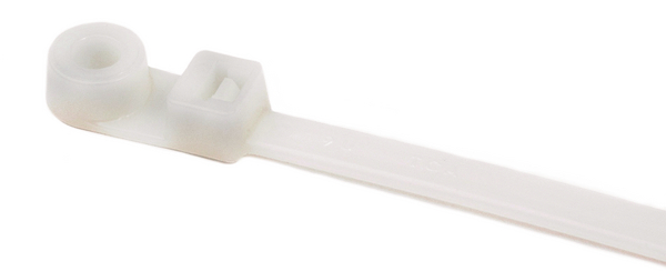 This range of one piece cable ties have a built in mounting hole and once fastened around the cables the bundle can be simply secured to the panel with a screw or bolt. The tie is fitted to the panel first and then the cables can be added. |