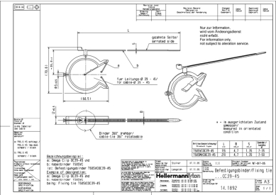 These inside serrated fixing ties provide the opportunity to attach a wire or hose to an existing harness. Offering a full 360 degrees rotation, the wire/hose can be oriented in any direction in relation to the main harness. |