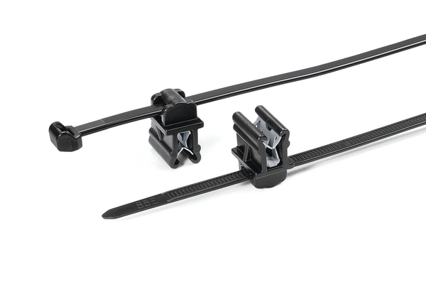 | Application | These cable ties and EdgeClip assemblies are ideal for use where holes are not acceptable or where due to temperature problems adhesives will fail. These assemblies are widely used for fixing and bundling cables, pipes and hoses within the automotive industry, harness making, panel building and electrical industry. |