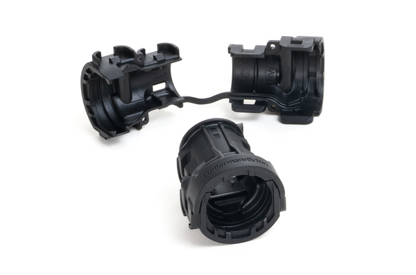 - Corrugated tube is completely enclosed by backshell, so that tube is not bruised in case of using an additional cable tie and cannot slip out of place especially during movement and vibration
