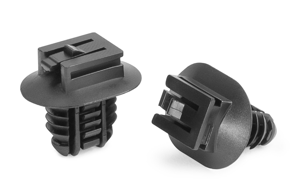 - Highly engineered designs feature anti-rattle discs, anti-rotation oval fir trees and clamps for mounting on edges.