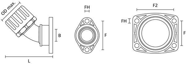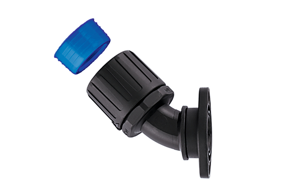 45° elbow swivel flange with conduit seal and washer. Fulfils IP66, IP67, IP68 and IP69k. |