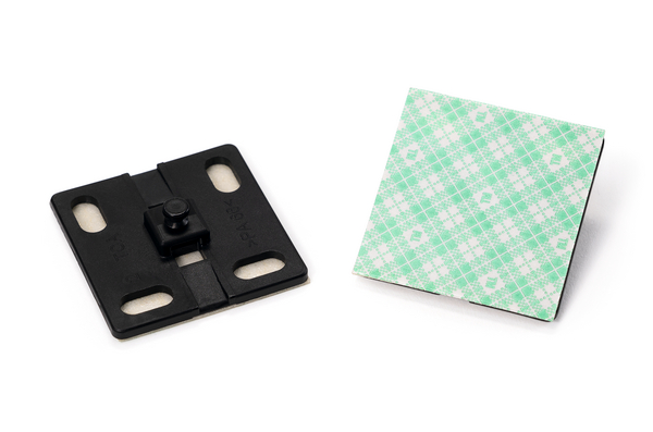 - Mounting plates can be fixed with screws, cable ties or adhesive