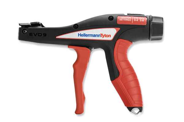 | Applikation | EVO9 fås med standard grebsvandring på 90 mm (EVO9) og kort vandring (EVO9SP) til mindre hænder. Begge værktøjer kan tilspænde fra 53N til 307N. EVO9HT (High Tension) er designet til til tilspænding af HellermannTyton kabelbindere fra 120 N op til 516 N med en maksimum bredde på 13,5 mm. |