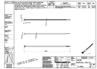 | Kort beskrivelse BMEcat | Kabelbinder med udvendige tænder 200x3,4 mm, V0 hvid |
