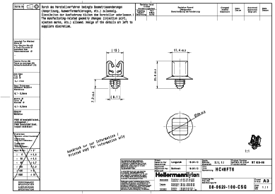 | Applikation | Dette fastgørelseselement presses ind i et hul med hånden og låses på plads med et hørbart klik. Kabelbundter kan påføres bagefter. |