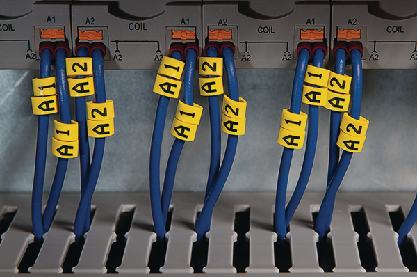 - Traditionel kabelmærkning i gul, hvid og farve kode