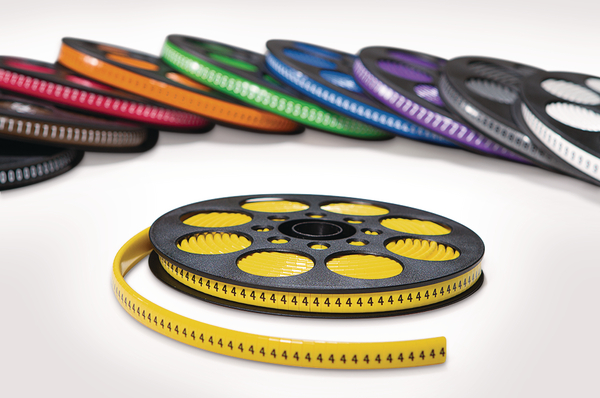 Kabelmærke, null/til glidemontering, Laser "M", ⌀1.8-6.3mm, gul, rulle=1000Stk.