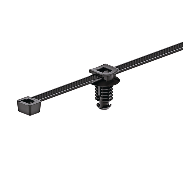 - Pre-assembled 2-piece fixing tie with fir tree foot part