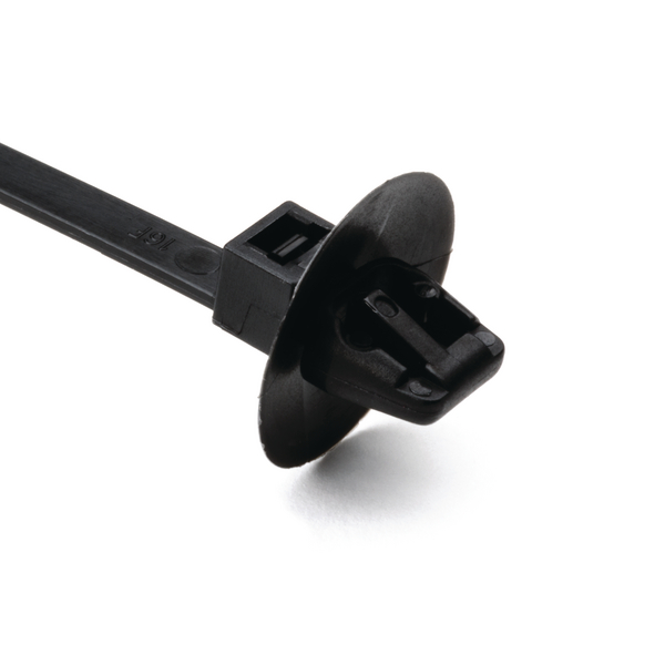 | Short Description | 1-Piece Fixing Tie with Arrowhead and Disc for oval holes PA66HS 160x5 mm black |