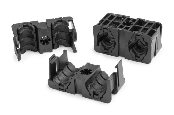 | Application | The HVCC bracket range is designed to hold multiple cables in line, they can be used to secure cables to the body panel or chassis using an M6 bolt or stud. They can also be used as a spacer along the length of the cables. The clamps have a high “pull apart” resistance and can be used in environments up to 90°C. |
