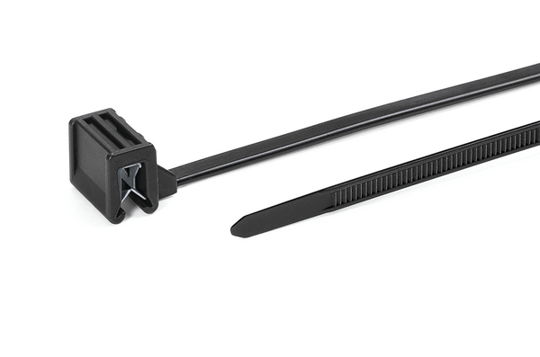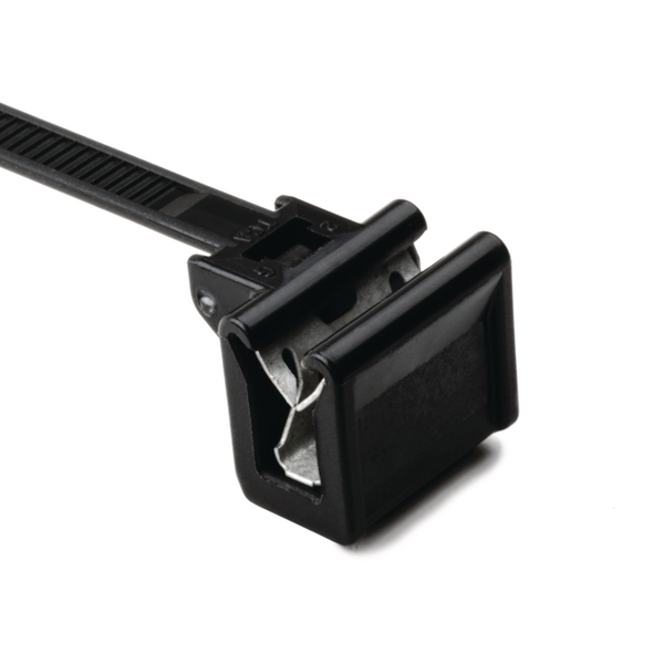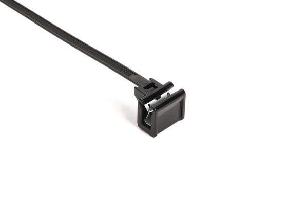HellermannTyton’s Cable Tie with Edge Clip is designed to route bundles by securing them to the edge of a plastic or metal sheet without the need for a mounting hole. The clip is easy to secure, and the extraction force is high due to the integrated metal clamp that holds the edge clip in place. This fastener is molded as a one-piece clip and tie combination.