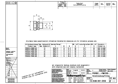 | PART DESCRIPTION | PSRSC20-FMCSS-M20-SS316/PA6-ML |