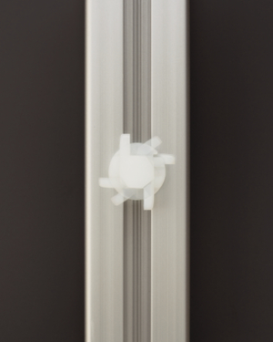 | Application | Our aluminium frame mounts are specially designed for aluminium construction profiles. Theirs installation and handling is very simple. At every favoured place on the profile just with a quarter turn the mount is firmly fixed. Also it can be easily loosened and repositioned at any time. The mounts are custom developed for several aluminium construction profiles. |