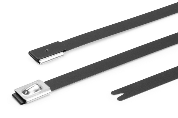 Stainless steel cable tie, ball bearing lock, 300x4.6mm, ⌀83mm, black, 100pcs.
